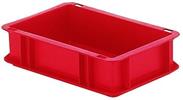 Bac empilable en PP. Les bacs résistent aux chocs et charges élevées. Disponible en rouge, bleu, jaune, vert et gris.