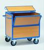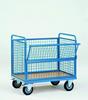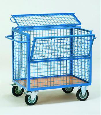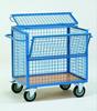 Voor alles wat veilig getransporteerd moet worden. Stabiel gelaste profielstalen constructie. Poedercoating RAL 5007. Laadvlak van houtvezelplaat, gefineerd met kunststof toplaag in beukenstructuur. Voorzien van 2 zwenk en 2 bokwielen van massief rubber, naaf met rollager. Zwenkwielen met rem. Uitvoeringen in zowel gaas als houtvezelplaat.