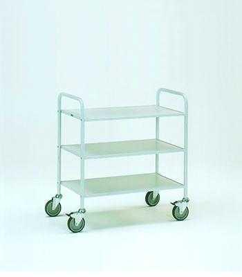 Een  uitgekiend programma dossierwagens voor vele noodzakelijke en  praktische  toepassingen. Solide  constructie  met  hoogwaardige  afwerking in  poedercoating,  naar  keuze in  lichtgrijs of witaluminium RAL 9006. Etages en wanden van houtvezelplaat rondom gefineerd met een  kunststof toplaag in  lichtgrijs  of beukendecor. Goede rij-eigenschappen door goede kwaliteit zwenkwielen, waarvan  2 met rem. Compact verpakt in doos en eenvoudig zelf te monteren. Verschillende  uitvoeringen  beschikbaar. (met zijwanden, achterwanden en  vakverdelingen).