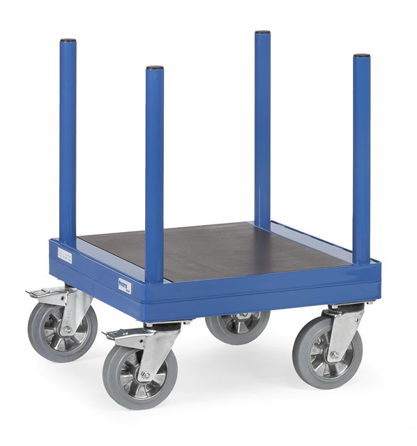 Type 852110: Laadvlak van watervast multiplex. Wielen: zwaarlast zwenkwielen van elastisch streeploos rubber, naaf met kogellager. 2 zwenkwielen met rem.