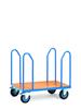 Platformwagen met vier beugels. Voorzien van 2 zwenk- en 2 bokwielen met rubber loopvlak. Poedercoating in Blauw RAL 5007. Beugelhoogte: 750 mm