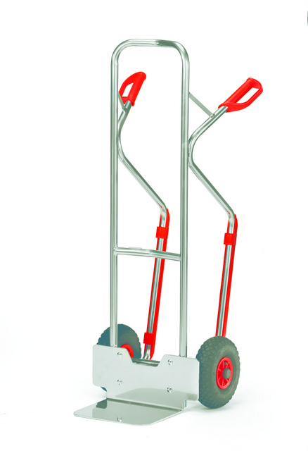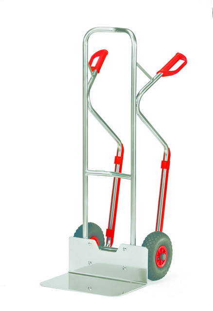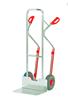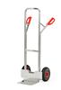 Aluminium steekwagens met zuiver gelast aluminium schep, zeer licht en handzaam. Luchtbanden op kunststof velg, naaf met rollager. Wieldia.: 260*85 mm
