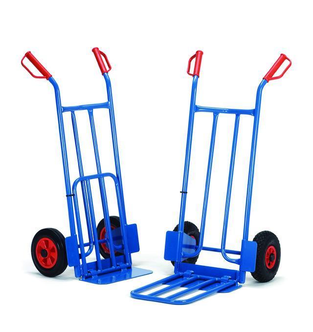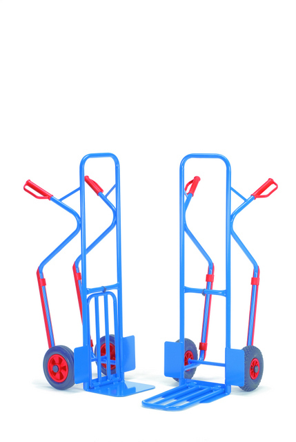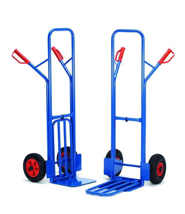 Handzame steekwagen met grote opklapbare schep van stalen buis. Stabiel gelaste constructie, poedercoating in blauw RAL 5007. Wielen naar keuze van massief rubber of luchtbanden op kunststof velg, naaf met rollager. Gedemonteerde aanlevering. Opvouwbare alu steekwagens vervaardigd uit een eersteklas aluminium constructie met aluminium schep en hoogwaardige kunststof onderdelen. Wielen van massief streeploos rubber, naaf met rollager. Elastische spanband voor het vastzetten van materialen.