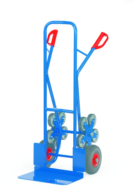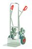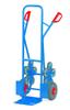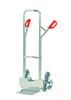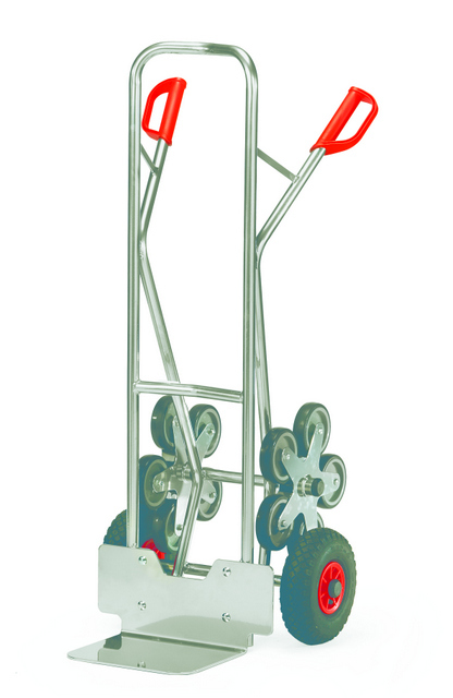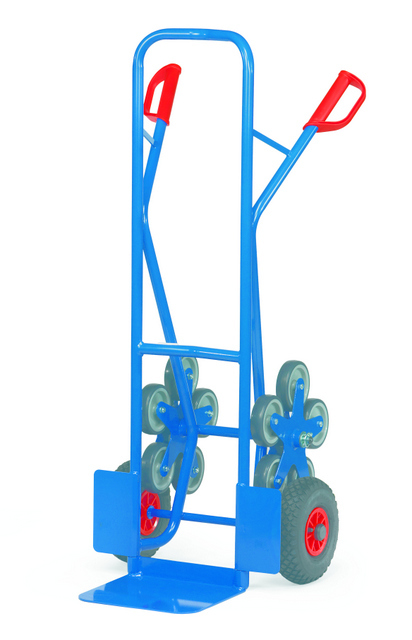 Stalen trappen steekwagens, met schep van staalplaat, stabiel gelaste constructie. Veiligheidshandvaten. Gedemonteerde aanlevering. Aluminium trappen steekswagens met een alu buis en alu schep. Handzaam gelaste constructie. Voorzien van veiligheidshandvaten. Alle modellen worden desgevallen voorizen van 3 of 5 armige wielsets uit massief rubberen wielen en eventueel met 2 luchtbanden een kunststof velg, naaf met rollager ..