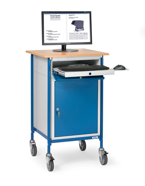 Type 855839 met een toetsenbordschuiflade, uittrekbaar en met uitschuifbaar muisblad. Werkblad horizontaal. Met kabelgat door het werkblad en de kast.