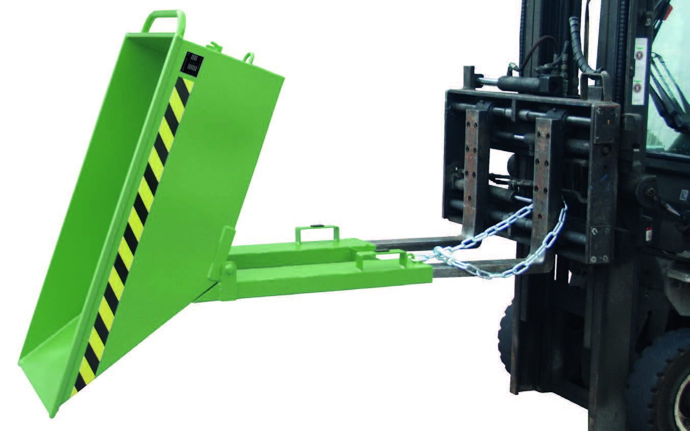 Kantelbak voor het verzamelen en afvoeren van stortgoederen en industrieel afval. Robuuste plaatstaalconstructie met randversterking. Kiepbare gelagerde bak met handgreep. Basisframe met inrijdkokers met heftruck eenvoudig te verplaatsen. Olie en waterdicht gelast en beveiligd tegen onbedoeld afglijden en kiepen. Montage van wielen mogelijk. Verzinkte deksel , 2 zijdig te openen in optie.