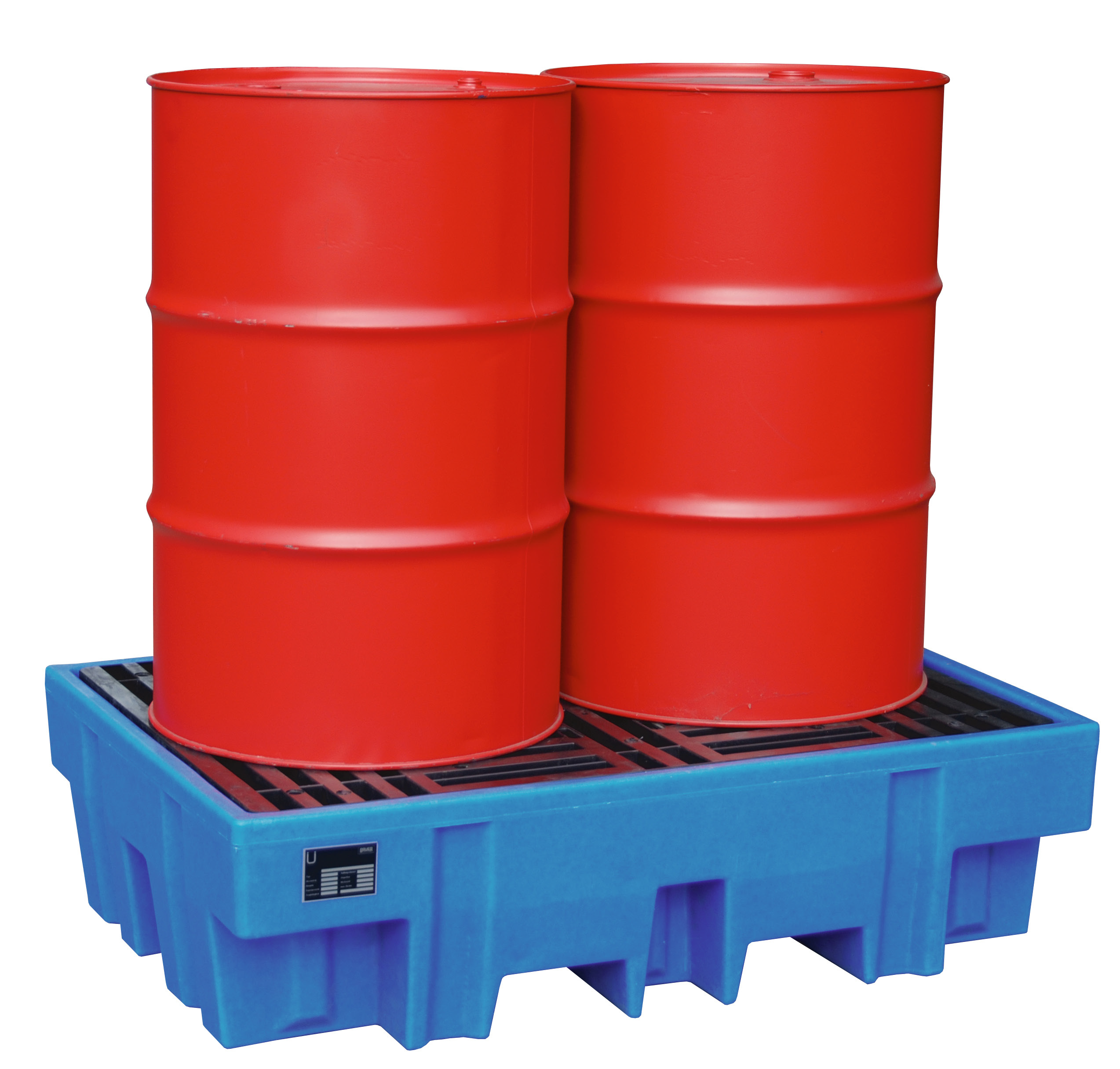 Opvangbakken uit polyethyleen, bestand tegen zuren, logen olie en verdere niet ontvlambare stoffen. Voorzien van inrijdkokers voor vorkheftruck. Deze bakken zij conform de alg. bouwaardtoelating DIBT, EN ISO 9001 en onder bewaking van TUV.