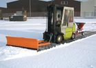 Een groot assortiment van aanbouwapparatuur voor de heftruck: sneeuwschuiver, sneeuwploegen, strooiapparaten, strooiwagens, weerbeschermers en heftruckbezems. De sneeuwschuivers zijn te verkrijgen in een uitvoering met staalschraaplijst, een rubberschraaplijst, een poliurethanschraaplijst of een veerklapschaar.