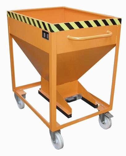 Trechter uit staalplaat met omlopende randversterking. Schuifslot met speciale dichting aan trechteruiteinde voor fijne korrels, met hand te bedienen. Opening 300*300 mm. Inhoud van 375 of 600 liter mogelijk. Toebehoren op aanvraag: verzinkte deksel, hijsogen... In gelakte en in verzinkte uitvoering mogelijk.Verzinkte deksel is in optie, prijs op aanvraag. Type a: met wielen, type b: met wielen en inrijdpockets, type c: met inrijdpockets en stapelhoeken.