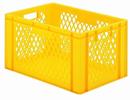 Kunststof stapelbak uit polypropyleen. Wanden gepeforeerd. Verkrijgbaar in rood, blauw, groen, geel en grijs. Ze zijn geschikt voor geautomatiseerde behandelingssystemen. De bakken zijn slagvast, vormvast en geschikt voor hoge belasting. Bedrukken met uw naam of logo op vraag. Leverbaar met deksel.