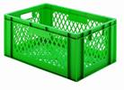 Kunststof stapelbak uit polypropyleen. Bodem en wanden gepeforeerd. Verkrijgbaar in rood, blauw, groen, geel en grijs. Ze zijn geschikt voor geautomatiseerde behandelingssystemen. De bakken zijn slagvast, vormvast en geschikt voor hoge belasting. Bedrukken met uw naam of logo op vraag. Leverbaar met deksel.