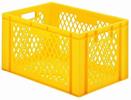 Kunststof stapelbak uit polypropyleen. Bodem en wanden gepeforeerd. Verkrijgbaar in rood, blauw, groen, geel en grijs. Ze zijn geschikt voor geautomatiseerde behandelingssystemen. De bakken zijn slagvast, vormvast en geschikt voor hoge belasting. Bedrukken met uw naam of logo op vraag. Leverbaar met deksel.