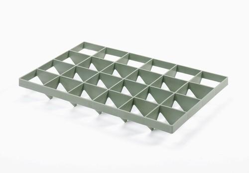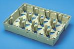 Kunststof bakken voor het transport van cateringmateriaal. Onderstaande afmetingen van de verdeelschoten betreffen de afmetingen per gerangschikt vak.