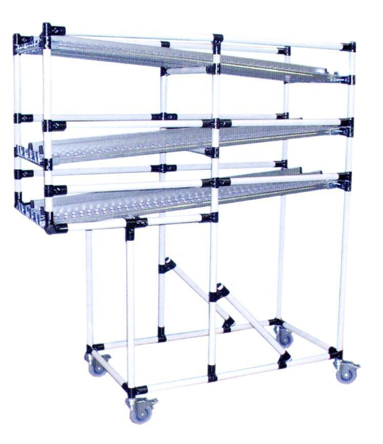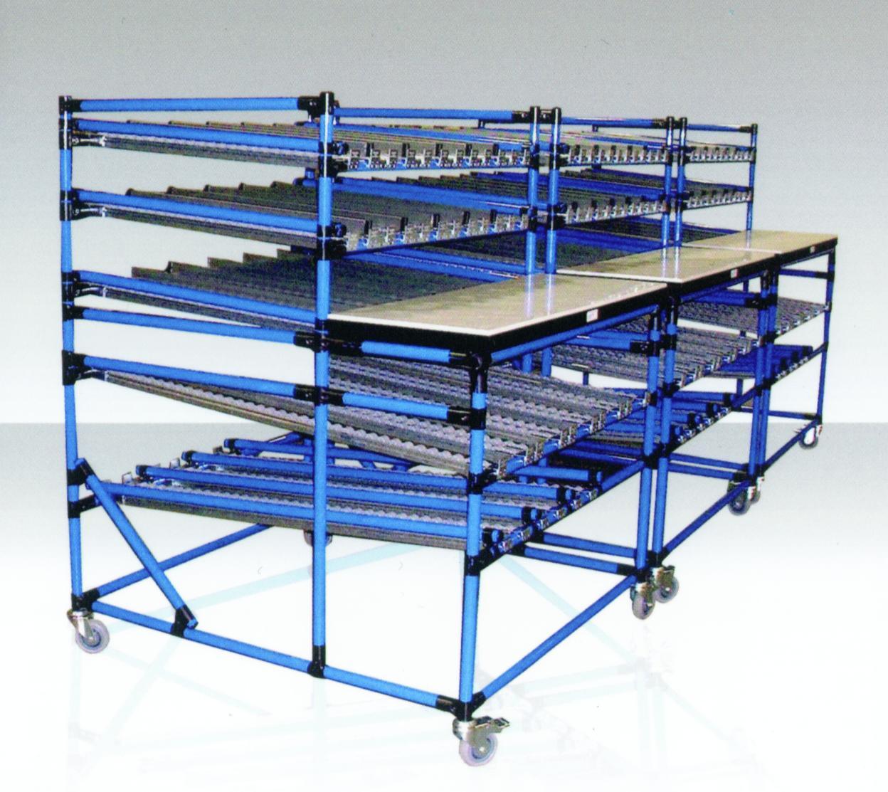 Mobiele dynamische racks of minirail conveyors in aluminium of in geëpoxeerde stalen buizen als Mecano- systeem. steeds op maat gemaakt volgens uw wensen en eisen. Technische studie wordt voorzien alvorens uitgebreide offerte met gedetailleerde tekening. Ook mogelijkeheid om materiaal in bulk te leveren zodat u naar wens alles op maat kunt brengen.