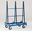 Glas- en platenwagen dubbelzijdige uitvoering. Opgebouwd uit profielstaal en stalen buis, gelast en afgewerkt met epoxy poedercoating. Steunprofielen met rubber bekleed. Nuttige opzetdiepte 2 x 230mm, nuttige hoogte 1450mm. 2 Zwenk- en 2 bokwielen met kogellagers en rubberbanden van 200mm. Draagvermogen : 1200 kg.