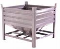 Stapelbak in staalplaat voor stortgoed, trechtervormig met uitlaadklep. Geschikt voor granulaten en kleine delen. Mechanisch regelbaar.