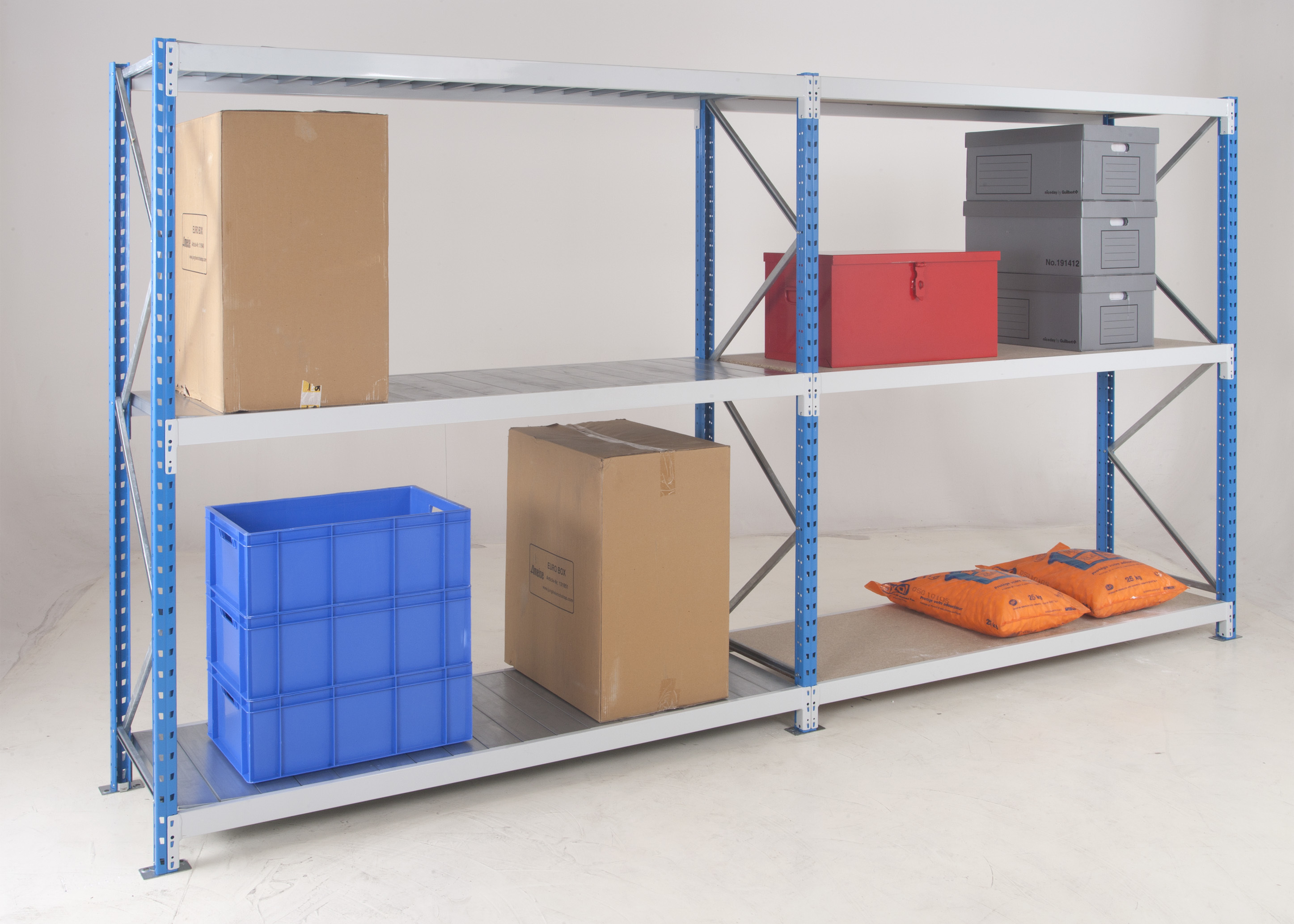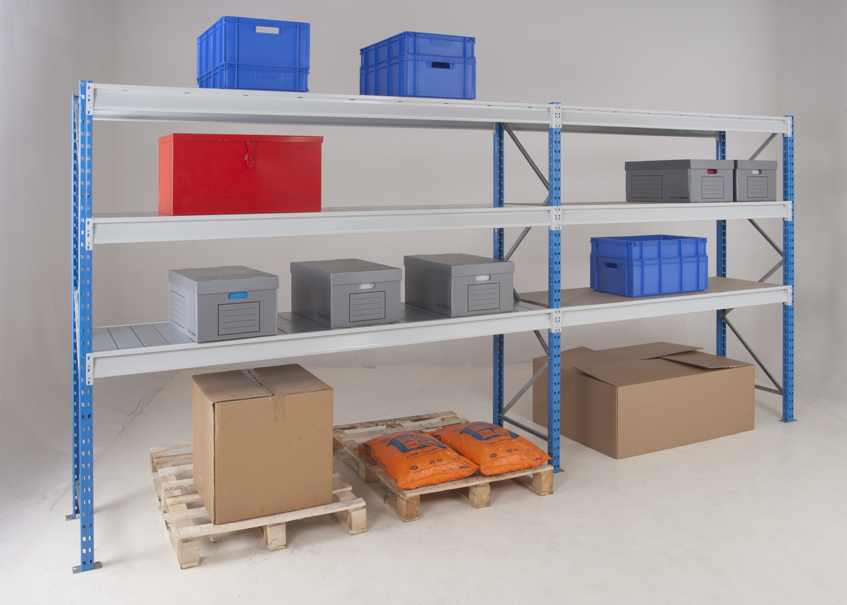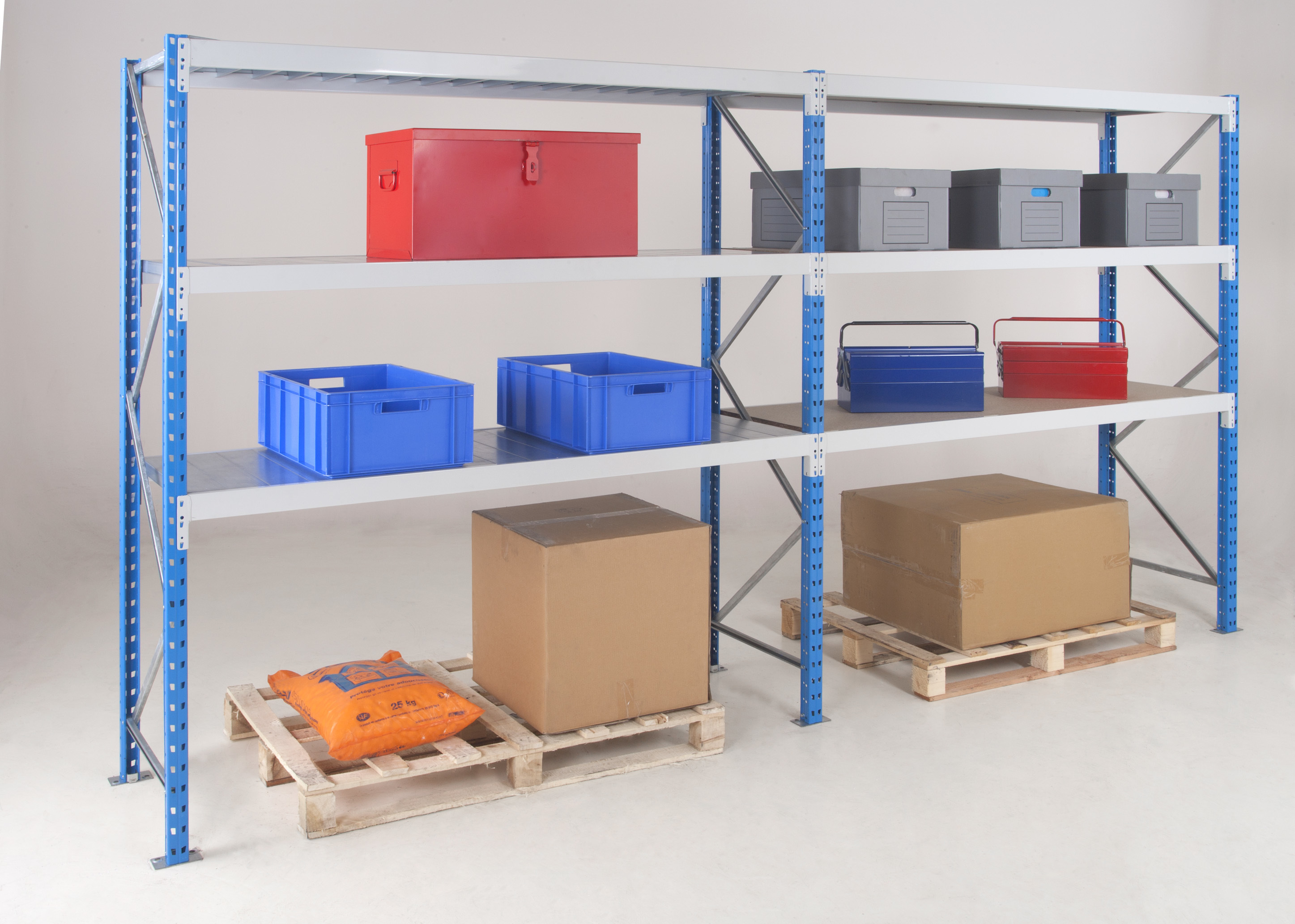 Een compleet en flexibel systeem. Staanders van 50*50*1.5 mm. Perforatie om de 50 mm. Laadvermogen tot 4500 kg. Hoogtes vanaf 1750 mm -t.e.m. 4500 mm. Verzinkte voetplaat van 110*60 mm voor een stabiele constructie. Diepte van de staanders vanaf 400 mm tot 1200 mm. Liggers mogelijk in verschillende profielen (trapsgewijs, z-profiel, speciaal voor bandenrekken...zie foto 4) en in een lengte van 1000 t.e.m. 3000 mm. Het type profiel en de lengte van de ligger bepalen de draagkracht. De liggers worden bedekt met een spaanderplaat van 19 mm. Ook mogelijkheid tot stalen dekplaat.